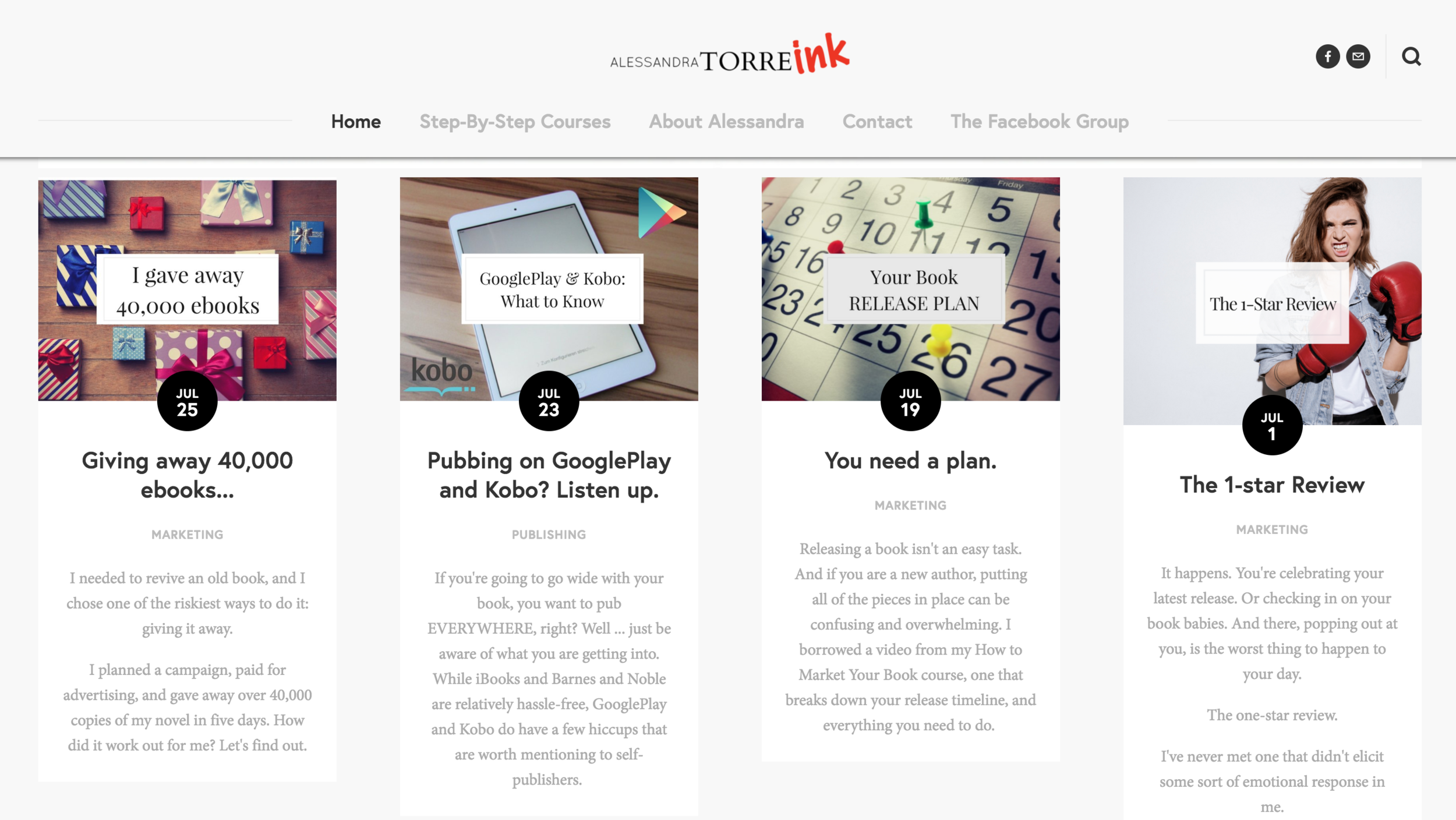 In case you missed it, I recently launched AlessandraTorreInk.com - a second website that is dedicated to aspiring authors and recently published authors. It is chock-full of helpful videos, tips, and writing advice. If you are interested in writing a novel, or already have, please check it out >> www.alessandratorreink.com
